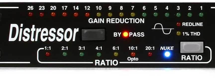 Важно понимать, что дисторшн в контексте Distressor - это, прежде всего, обогащение сигнала гармониками. На отдельных треках включенный режим distortion просто делает сигнал ярче и жирнее и вы можете не услышать при этом искажений как таковых. На шинах и общем миксе искажения более заметны.