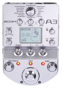 Очень удобный процессор. Если у вас есть только акустика или вы хотите добавить нового звука в выступления, это очень хорошо. Это не обычный процессор, в который вы втыкаете свою гитару в линию, а должны использовать для этого микрофон. Интерфейс очень простой. Вы можете имитировать звучания всех известных разновидностей акустических гитар. Ко мне этот процессор попал совершенно случайно. Моему другу он был не нужен, и он мне просто его отдал, пока не надоест. В нутрии процессора есть встроенный бустер, и вы можете настроить каждую частоту в отдельности. Очень круто. Сам по себе он очень качественно и надежно сделан в довольно минималистичном стиле.