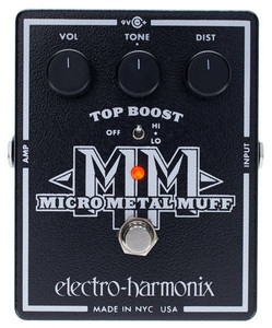 Несколько "урезанный" и, соответсвенно, более бюджетный вариант знаменитой педали Metall Muff от авторитетного американского производителя. Педаль предназначена (как видно и из названия) для любителей жёсткого и агрессивного звучания и отлично подойдёт для экстремальных стилей музыки. От своего старшего брата Micro metal muff отличается отсутствием регуляторов трёхполосного эквалайзера, но зато за эквализацию здесь отвечают маленький переключатель, выделяющий либо низы, либо верха и ручка регулировки тона. Также отсутсвует кнопка Bypass.