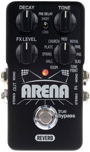Отличный космический ревер,отлично подойдет эмбиентщикам и музыкантам, требующим огромное количество диких звуков, шумов. Все пресеты довольно хорошо звучат и вполне юзабельны. Как это обычно и бывает в недорогих комбайнах, пружина не совсем похожа на пружину, но есть тот самый призвук) Очень удобна технология тонпринтов, когда можно поменять пресет не наклоняясь к педали и крутя ручки. Достаточно скачать приложение на айфон, или любой эпл-девайс и открыть вкладку с Arena reverb, выбрать нужный пресет, поднести динамик к звукоснимателю и нажать Старт)