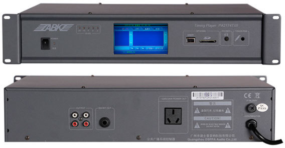 PA2174TIII - это своего рода проигрыватель с таймером для MP3, основанный на платформе микропроцессорной системы битов ARM32 и объединяющий воспроизведение программы с U-диска и SD-карты и управление синхронизацией воспроизведения программы с SD-карты. В оборудовании используется 4,3-дюймовый жидкокристаллический сенсорный экран с надписями на китайском и английском языках по выбору. Все функции и состояние оборудования абсолютно понятны. Легко управлять наощупь. Любая работа оборудования визуализирована и понятна, а взаимодействие человека с компьютером проявляет гуманизм и интеллект.