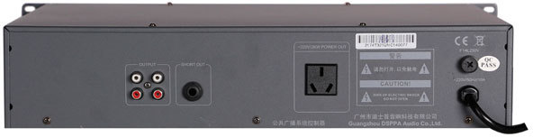 Схема мониторинга наушников встроена в оборудование. Имея доступ к наушнику на передней панели оборудования, можно следить за состоянием воспроизведения оборудования. В оборудовании есть выходная розетка переменного тока 220 В, которая используется для обеспечения рабочего питания для другого оборудования. Кроме того, включенное-выключенное состояние такого выходного разъема питания является предметом временного управления точкой отсчета времени или ручного управления, чтобы облегчить пользователю работу. В этом оборудовании есть выход интерфейса сигнала короткого замыкания, который подключается к оборудованию, которому требуется сигнал запуска короткого замыкания, чтобы играть роль в аварийном подключении.