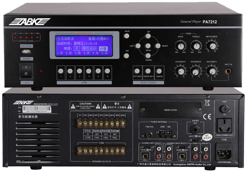 ABK PA7212 Мультифункциональный MP3/FM/AM проигрыватель с разделением сигнала по зонам (6 зон)
