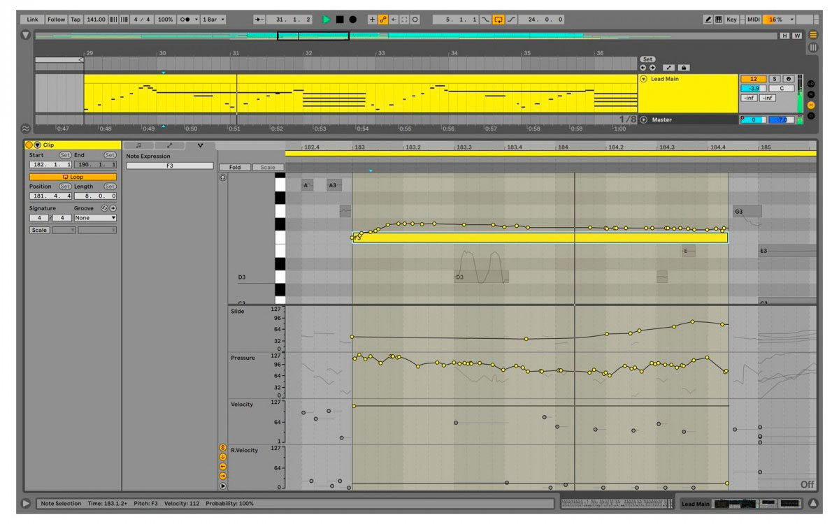 - Expression View: добавляйте и редактируйте изменения высоты тона, тембра и давления отдельных нот непосредственно на новой вкладке в окне Clip Detail View.