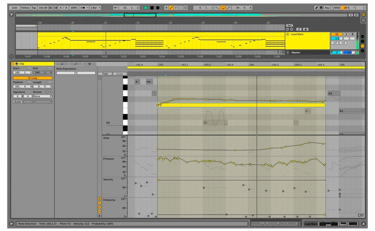 - Expression View: добавляйте и редактируйте изменения высоты тона, тембра и давления отдельных нот непосредственно на новой вкладке в окне Clip Detail View.