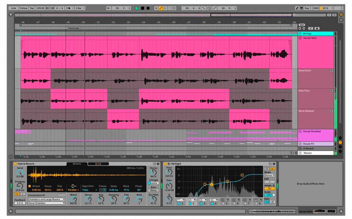 Помимо стандартного линейного представления сессий, Ableton Live оснащен всеми необходимыми стандартными функциями DAW. Неразрушающая многодорожечная запись с частотой до 32 бит/192 кГц - это начало. Вы получаете мощные инструменты микширования и обработки сигналов, такие как бустинг и возвратные дорожки. Форматы плагинов VST и AU вписываются в ваш рабочий процесс наряду с замечательными инструментами, поставляемыми в комплекте с Live. Возможности Live по MIDI-секвенсированию не имеют себе равных, а легкий доступ к кривым автоматизации, MIDI learn и многое другое делают эту DAW мощным инструментом.