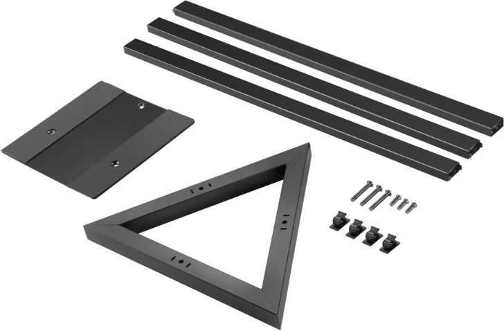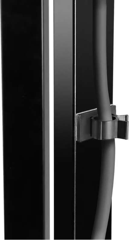 Исключительно прочная конструкция из стали с черным порошковым покрытием выдерживает максимальный вес 40 кг. В комплект поставки также входят 4 кабельных зажима для аккуратной организации кабеля, а также набор стальных шипов.