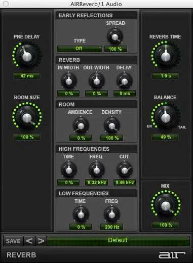 - AIR Reverb: используйте эффект Reverb для применения реверберации к аудиосигналу, создавая ощущение пространства. Обычно реверберацию используют в одном из вставных эффектов Effect Send или Main Effects.