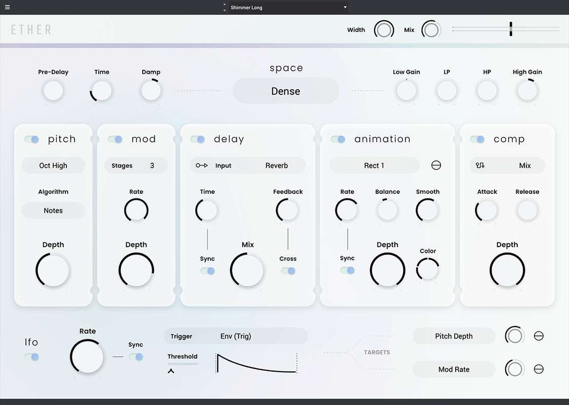 Реверберация стала еще более дикой. Ether — это уникальный ревербератор, который выводит ваш звук на новый уровень благодаря своим беспрецедентным возможностям обработки.