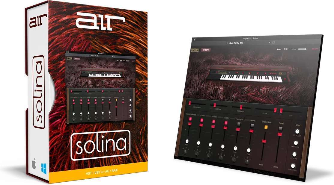 Плагин AIR Solina основан на культовом классическом полифоническом клавишном инструменте с 6 тембрами. Он включает в себя контрабас, виолончель, альт, скрипку, трубу и валторну с независимым управлением громкостью, панорамированием и высотой тона. Комбинируйте их для создания мощного звукового опыта, который оживит даже самую захватывающую музыкальную композицию. Solina воспроизводит классические звуки с высокой реалистичностью, превосходной точностью и динамической реакцией, используя запатентованное динамическое моделирование, уникальное сочетание оптимизированных технологий сэмплирования и моделирования. Разработан на основе более чем 20-летнего опыта в этой области. AIR Solina также включает в себя новый раздел Flavor для добавления текстуры и цвета к звуку. Также встроен широкий набор эффектов, включая Delay, Reverb и Chorus. С 75 пресетами и бесконечными возможностями настройки, AIR Solina — мечта звукорежиссера, в которой нет недостатка в регуляторах для создания невероятно уникальных клавишных тембров.