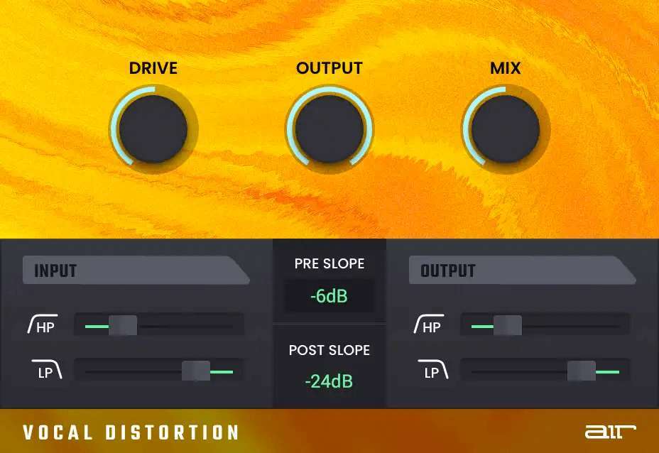 От едва заметного насыщения до более экстремальных дисторшн-эффектов — AIR Vocal Distortion это ваш универсальный инструмент для добавления характера вокальным трекам. Настройте теплый тон, напоминающий классический винтажный микрофонный предусилитель, или выкрутите драйв и «прожмите» звук для драматичного перегруженного эффекта. Когда вам нужно добавить дополнительный характер вокальной дорожке — обратитесь именно к этому плагину. Оснащен отдельными фильтрами высоких и низких частот как на входной, так и на выходной стадии, каждый с тремя переключаемыми крутизнами спада (slope).