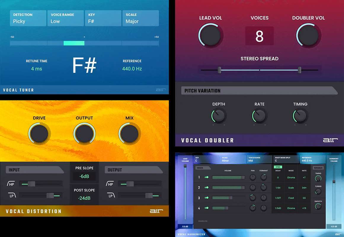 Когда вам нужно добавить мощь, создать разделение или просто попробовать что-то новое с вашим вокалом — используйте Air Vocal FX Collection. Набор включает AIR Doubler, AIR Vocal Tuner, AIR Vocal Distortion и AIR Vocal Harmonizer.