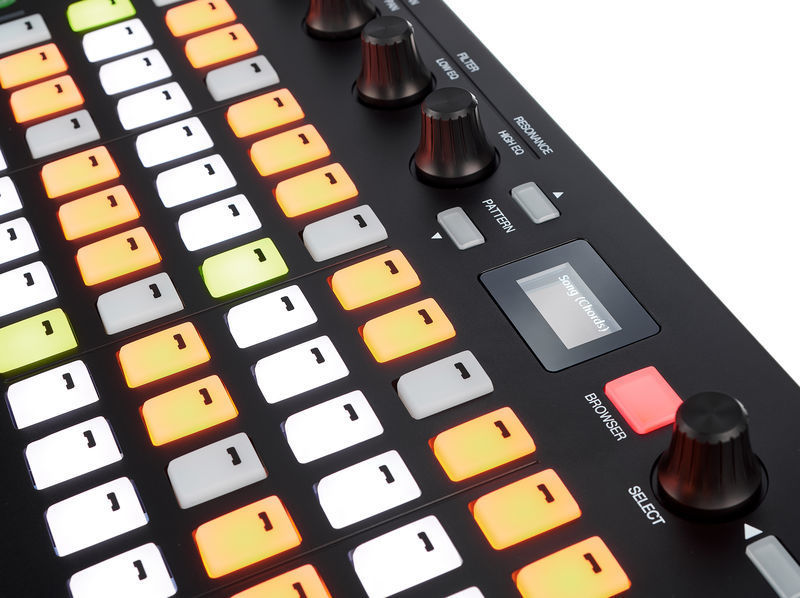 Интеграция «Plug & Play» реализована так, что в течение нескольких секунд Вы можете создавать паттерны и даже целые треки, используя матрицу 4х16 чувствительных RGB пэдов, перемещаться между блоками каналов, браузером и панелью инструментов без использования мыши или тач-пада. Графический OLED-дисплей позволяет просматривать и управлять различными параметрами в рабочем проекте.