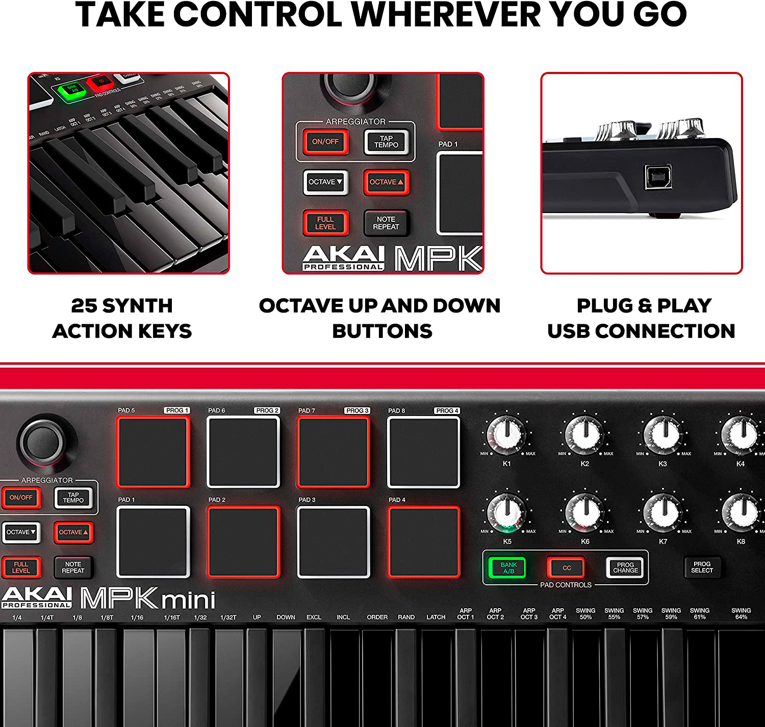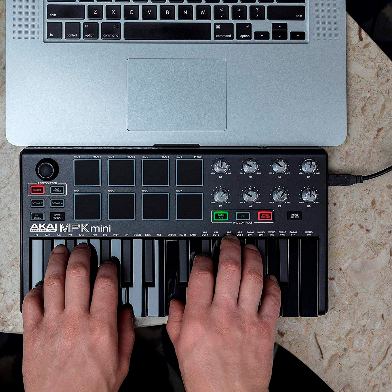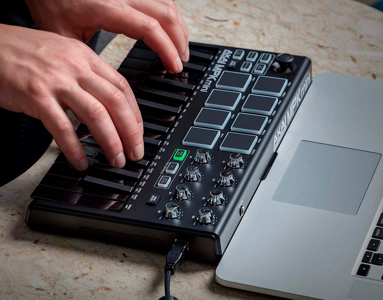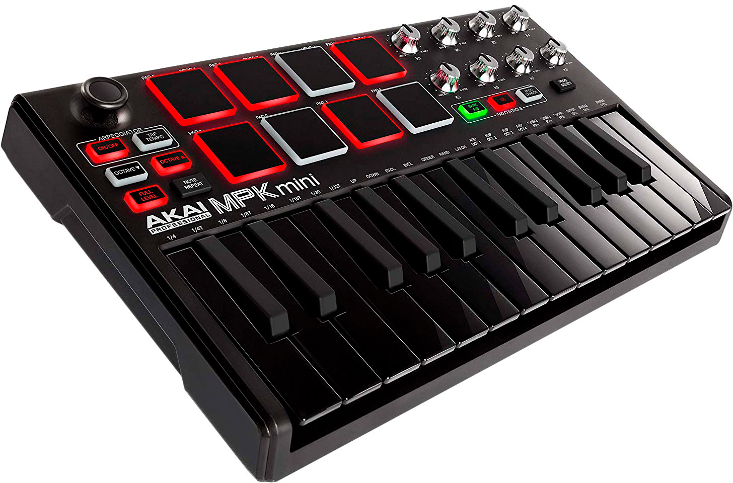 AKAI MPK mini Mk2 LE Black — ультракомпактный USB / MIDI контроллер с 25 клавишами, чувствительными к силе нажатия. Предназначен как для использования в дороге, так и в студии. Девайс позволяет сочинять и записывать музыку, а также работать с виртуальными инструментами и плагинами.