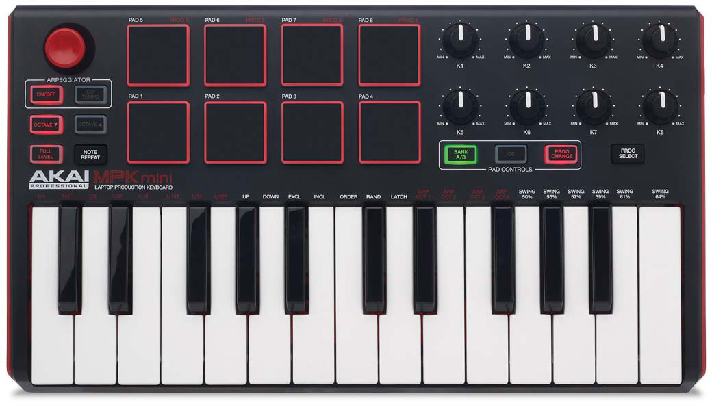 AKAI PRO MPK MINI MK2 USB миди клавиатура с уменьшенными клавишами.