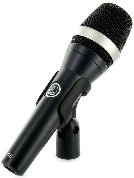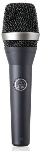 AKG D5 микрофон сценический вокальный динамический суперкардиоидный, разъём XLR, частотный диапазон 70-20000Гц, чувствительность 2,6мВ/Па, импеданс 600Ом, рекомендованная нагрузка 2000Ом, в комплекте чехол и адаптер для стойки SA61, цвет тёмно-серый.