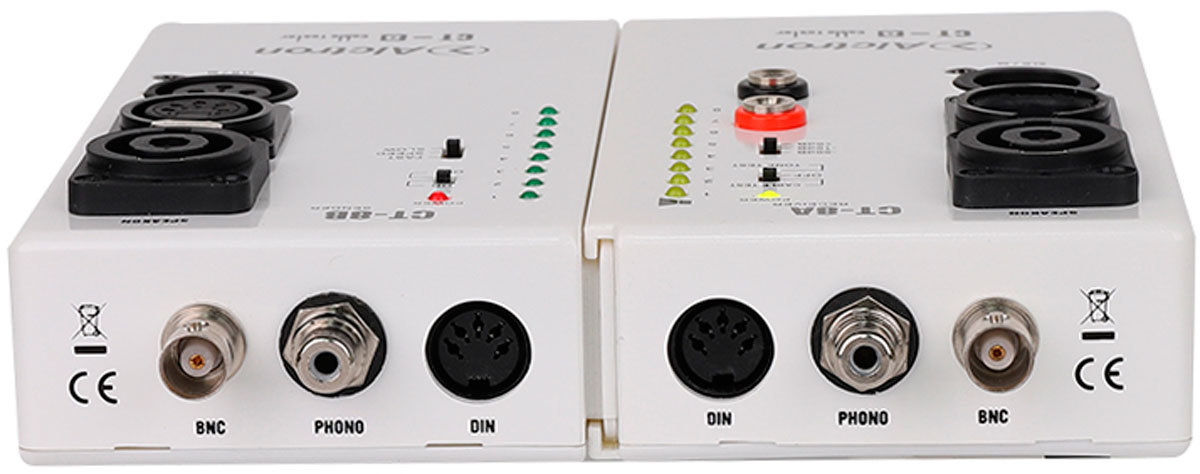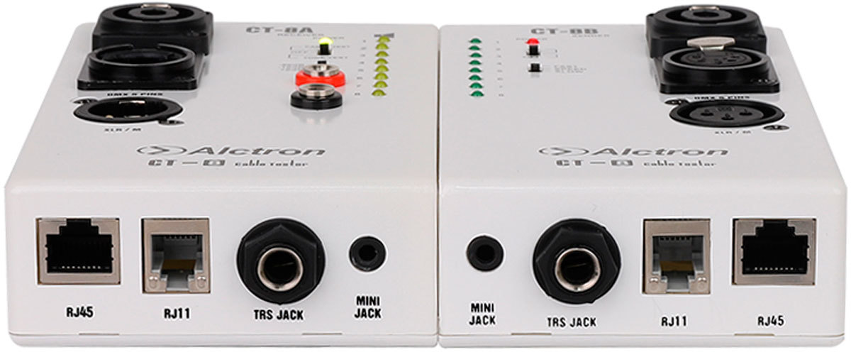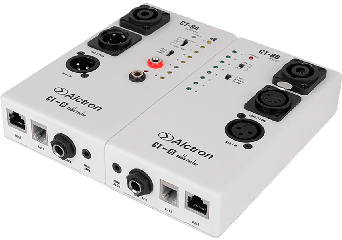 Alctron - это интеллектуальный кабельный тестер для использования с разъемами BNC, PHONO, DIM, SPEAKON, DMX 5 PINS, XLR, RJ45, RJ11, TRS JACK и MINI JACK. Поддерживаются такие режимы тестирования, как непрерывность, обнаружение заземленного экрана и несколько тестовых тонов. Питание осуществляется от батареи постоянного тока 2х9В. Если вы специализируетесь на монтаже сцены или студии звукозаписи, вам приходится сталкиваться с неповрежденной сценой или оборудованием, но при этом в оборудовании нет звука или звук искажается необъяснимым образом. CT-8 поможет вам проверить каждый кабель или разъем, если они подключены правильно (тест на короткое замыкание или плохой контакт), чтобы устранить и решить проблему.