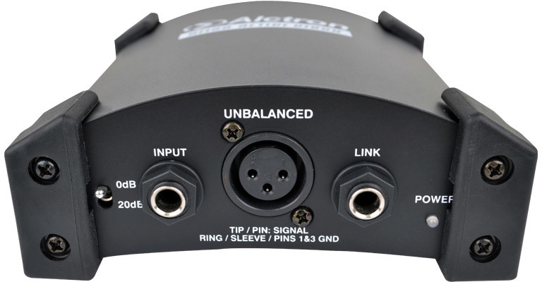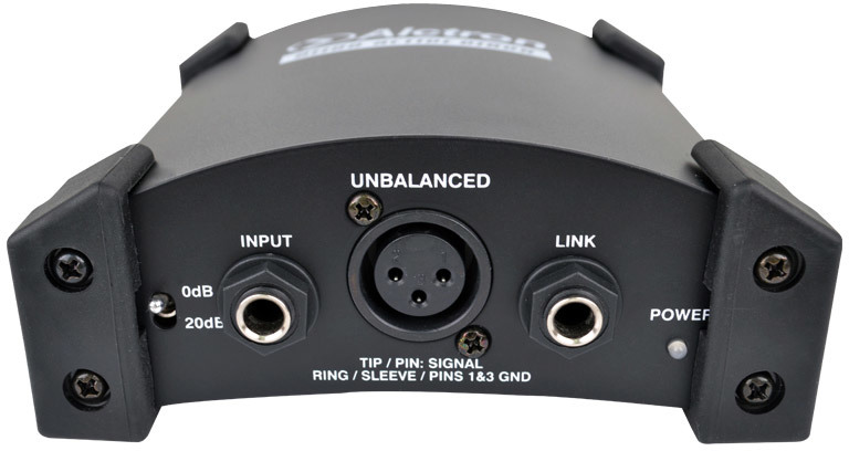 - Преобразует сигнал из источника с большим сопротивлением HI-Z на XLR выход с низким сопротивлением LO-Z.