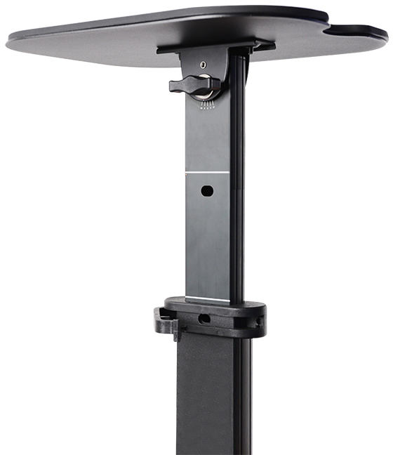 Компания Alctron выпустила стойку MS150 с новым современным дизайном. Благодаря основанию в виде треноги аксессуару обеспечивает устойчивость, а резиновые пэды предотвращают скольжение в процессе эксплуатации и снижают вибрацию от пола. Стойка рассчитана на мониторы размером до 8", полка прорезиненная и монитор надежно прилипает и не скользит. Стойка регулируется по высоте.