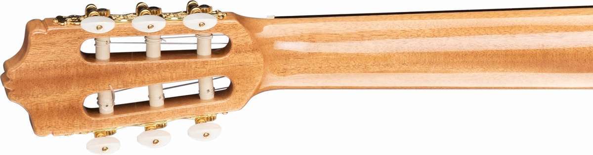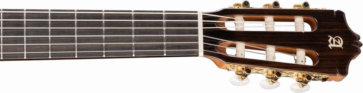 Модель 7C полностью изготовлена вручную из массива кедра и красного дерева. Накладка грифа из красивого черного дерева высочайшего качества. Как и у концертных гитар, гриф усилен полосой черного дерева вместо анкерного стержня. Компактный и легкий он позволяет вибрировать всему инструменту от головки грифа до нижней части корпуса. Звучание гитары чистое, насыщенное и чрезвычайно универсальное.