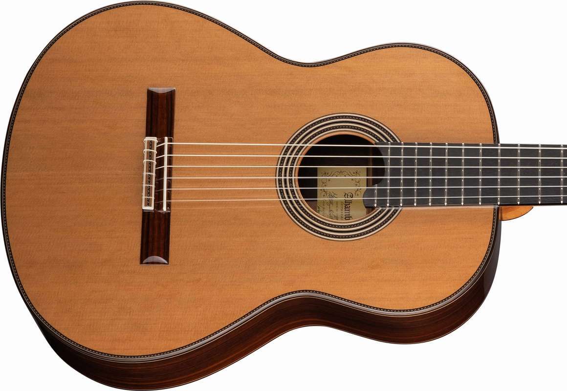 Эта гитара всегда готова к любым требованиям каждой исполнительской ситуации, верхняя дека из массива кедра, задняя дека и обечайка из палисандра обеспечивают теплое, богатое, отчетливое звучание любого произведения.