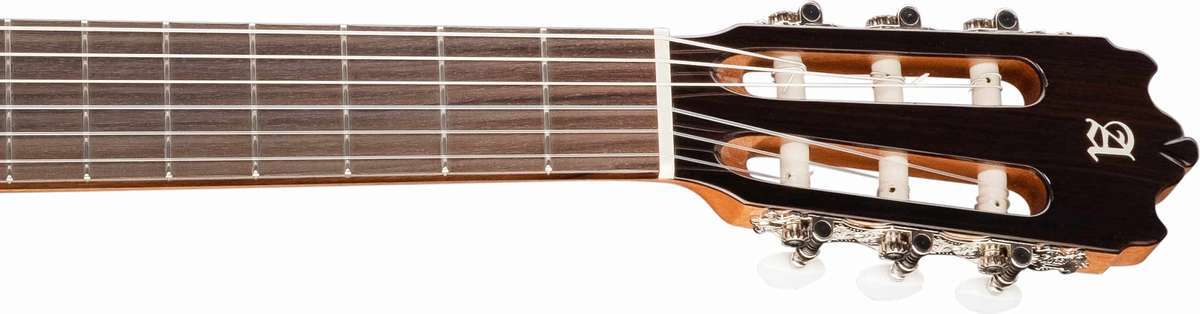 Верхний и нижний порожки гитары изготовлены из меланина, материала отлично передающего вибрации и создающего округлое, очень сбалансированное звучание.