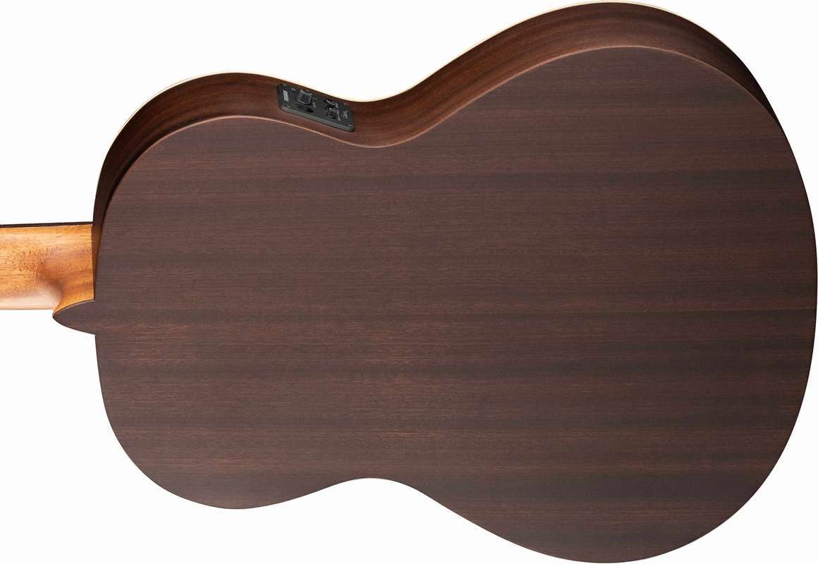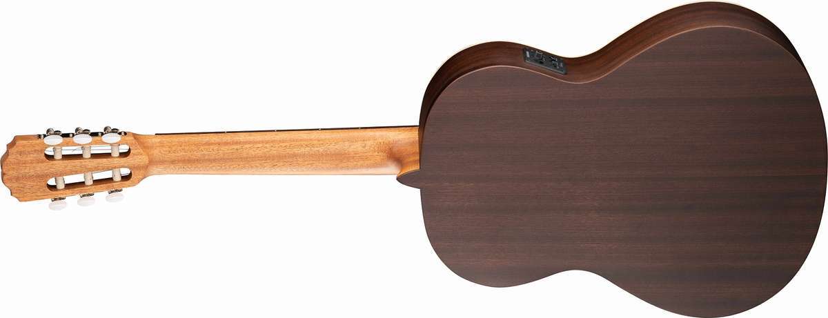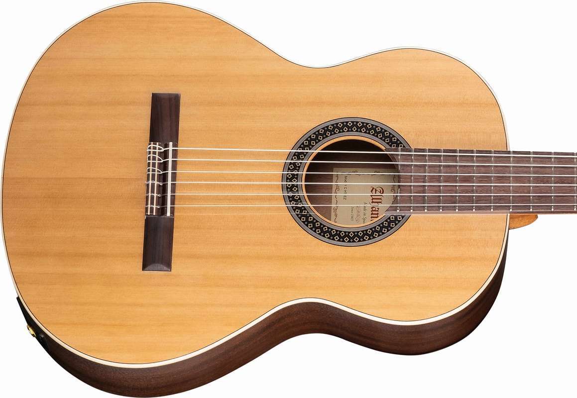 Как и все модели Alhambra, гитара изготовлена вручную из отборных пород древесины. Для верхней деки использован массив кедра, а для обечайки и задней деки — красное дерево (сапели).