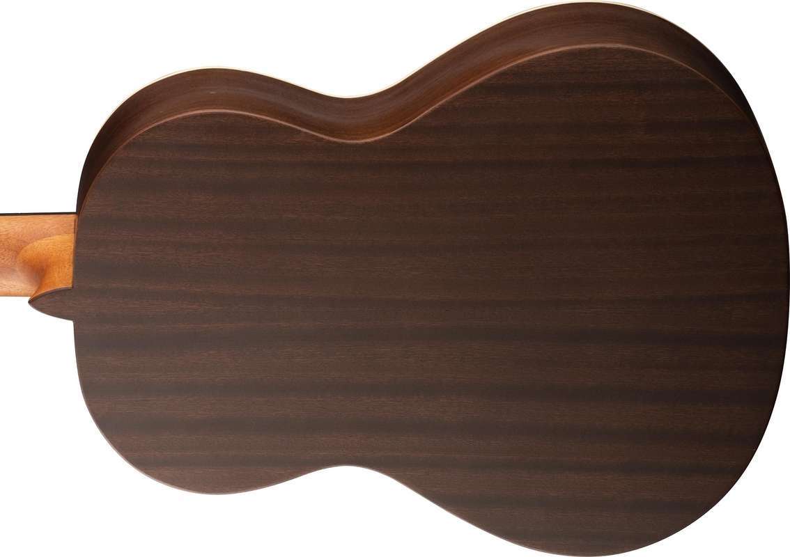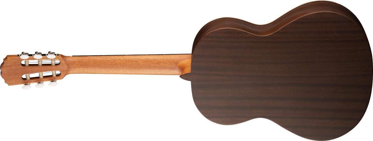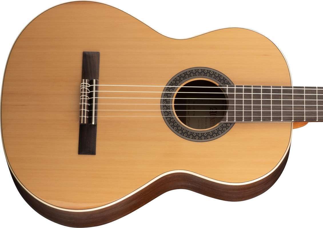Как и все модели Alhambra, гитара изготовлена вручную из отборных пород древесины. Для верхней деки использован массив кедра, а для обечайки и задней деки — красное дерево (сапели).