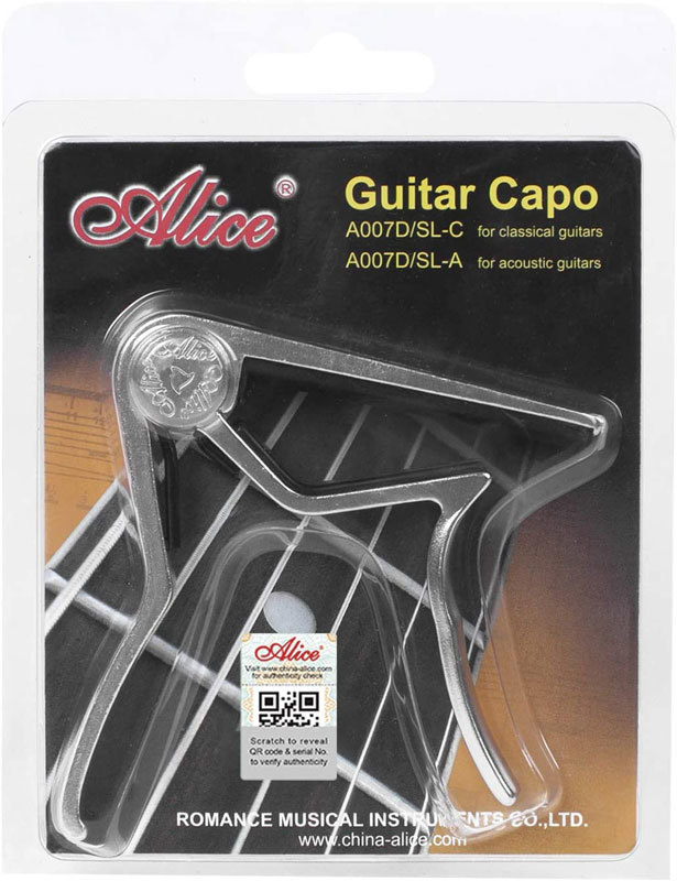 Alice A007D/SL-C каподастр для классической гитары, металлический на пружине, быстрозажимной