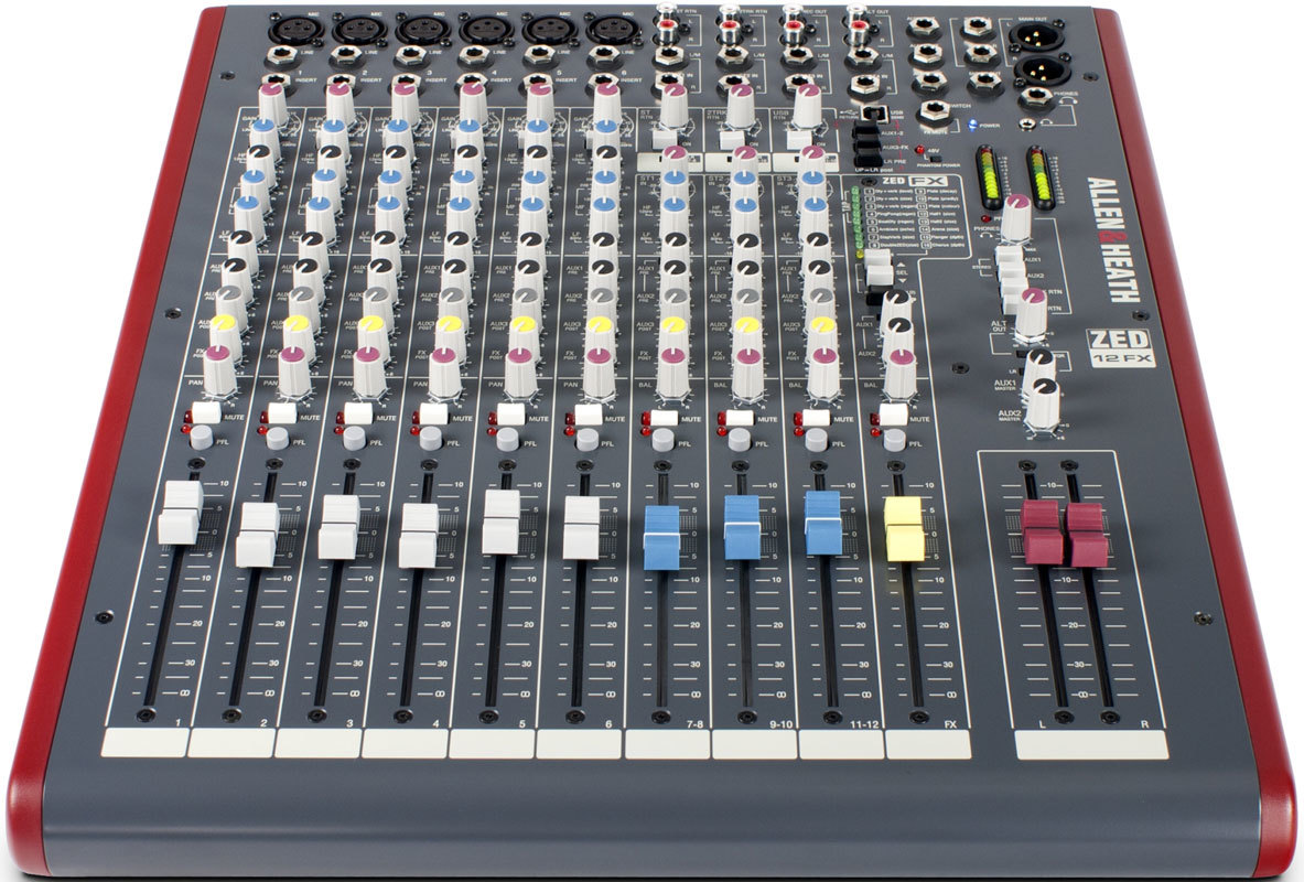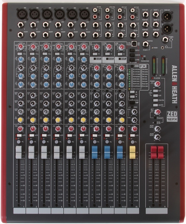 Микшерный пульт Allen&Heath ZED-12FX идеально подходит для исполнителей и групп, которым необходимо гастролировать "налегке", имея всё необходимое всегда с собой. Обладая небольшим размером и впечатляющим набором функций, ZED-12FX имеет также 4 вспомогательных канала и параметрический эквалайзер. Помимо этого, встроенный USB аудио порт, работающий как вход/выход, позволяет легко осуществлять запись в режиме стерео.