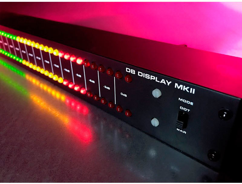 Светодиодный индикатор имеет цветовую шкалу от зеленого через янтарный до красного. Имеется два режима визуализации: точечный и столбиковый. В комплект поставки входит источник питания 5 В, позволяющий мгновенно подключать и запускать устройство. Устройство DB DISPLAY идеально подходит для установки на сценических площадках, в церквях, клубах и барах, а также для использования мобильными артистами.