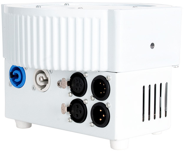 - Интеллектуальная конструкция входов/выходов питания и DMX (подана заявка на патент): находятся сбоку, поэтому устройство можно разместить прямо на полу или установить внутри фермы