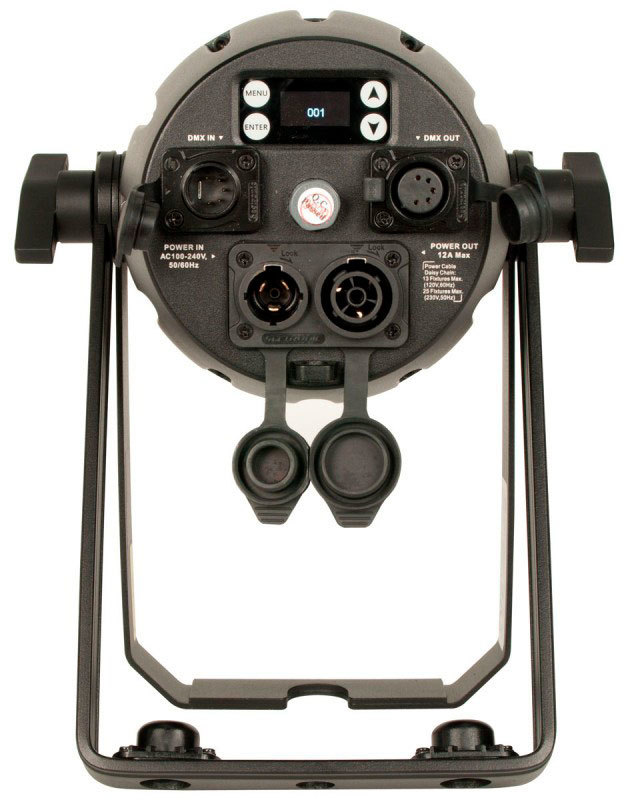 Устройство Encore Burst RGBW IP имеет выбираемые кривые яркости, стробоскопический эффект, 4-кнопочную систему светодиодного меню, класс защиты IP65, 5-контактный вход/выход DMX, а также фиксируемый вход/выход питания Seetronic для гирляндного подключения питания (с резиновыми защитными крышками на всех разъемах).