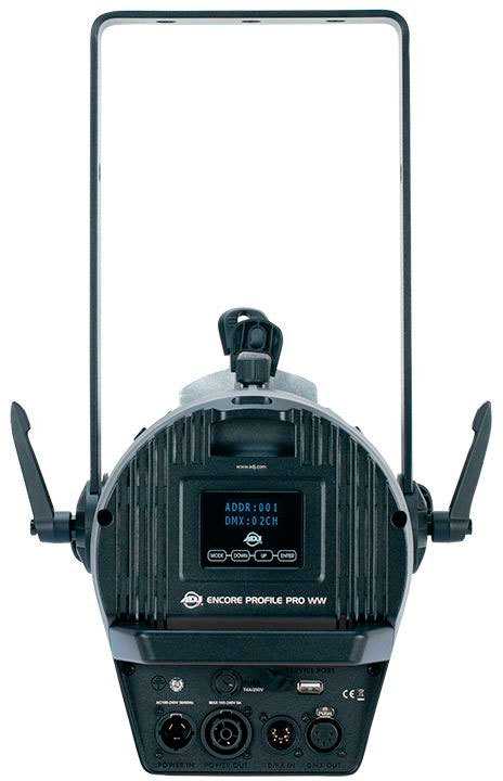 Театральный профильный прожектор ADJ Encore Profile Pro WW™ оснащен мощным светодиодным источником теплого белого света 260W с цветовой температурой 3200К. Угол раскрытия луча зависит от установленной линзы (не входит в комплект): 5°, 10°, 14°, 19°, 26°, 36°, и 50°, для обрезки проекции служат четырехсторнонние ручные шторки.