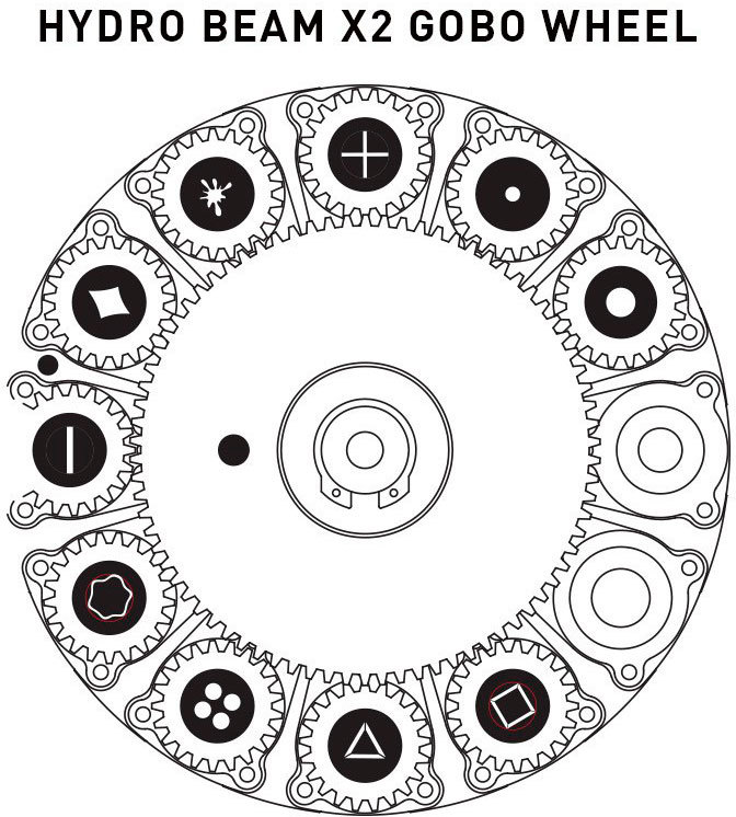 Устройство Hydro Beam X2 предлагает богатое разнообразие функций, включая линейный моторизованный фокус, 8-фасеточную кольцевую призму с наложением, 8-фасеточную линейную призму с наложением, поворотные и съемные стеклянные и металлические гобо, 3 переходника гобо и независимый фильтр размытия для эффекта омывающего освещения.