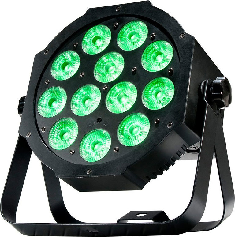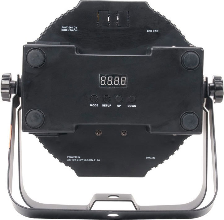 ADJ Mega 64 Profile Plus Сверхяркий прожектор Par 64 с 12 светодиодами Quad (RGB-УФ 4-в-1) мощностью 4 Вт- 5 режимов DMX-каналов: 4/5/6/9/10- 5 режимов работы: режим диммера RGB+УФ, режим звуковой активации, режим автозапуска (16 программ смены цветов, 16 программ затухания цветов, сочетание смены и затухания цветов), режим статических цветов и управление DMX- Автономный режим и конфигурация Master/Slave- Угол луча: 25?- 4-кнопочный светодиодный дисплей DMX- 64 встроенных цветовых макроса- Совместимость с беспроводным инфракрасным пультом дистанционного управления ADJ LED RC2 дальностью действия до 10 м (продается отдельно)- Размеры (ДxШxВ): 261 x 260 x 110 мм- Масса: 2,1 кг