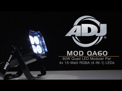 Устройство MOD QA60 поставляется с четырьмя светодиодами RGBA (4-в-1) мощностью 15 Вт каждый (общей мощностью 60 Вт), вилочным кронштейном и тремя взаимозаменяемыми фильтрами размытия, которые легко заменяются барашковыми винтами. Стандартный угол луча 17° можно на ходу изменить на 20°, 40° или 60°.