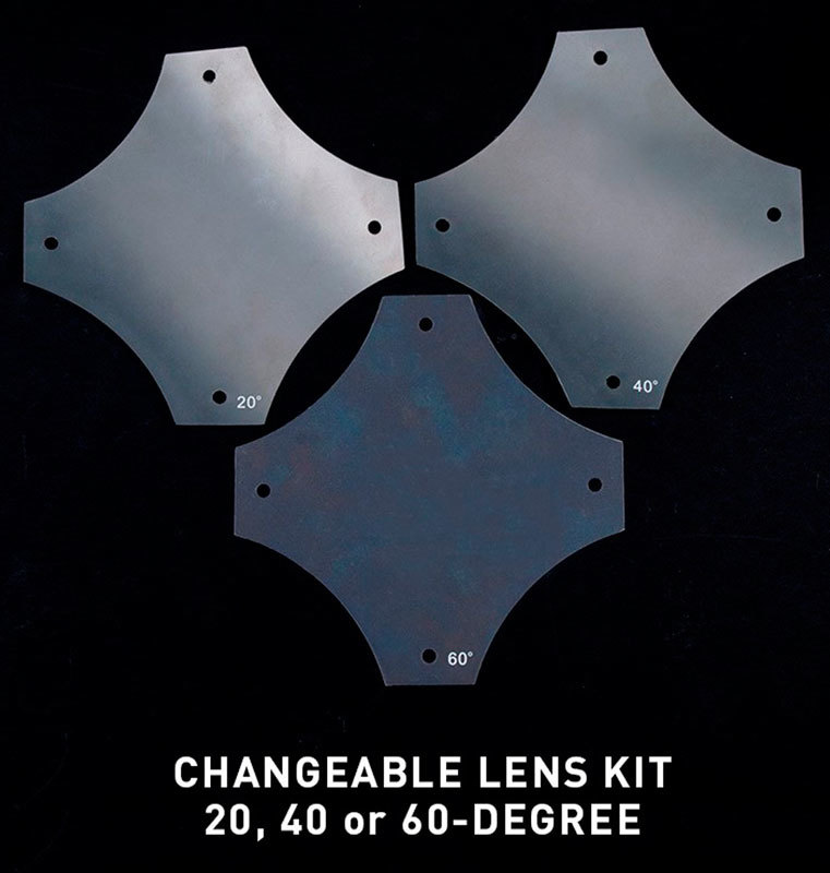 - Комплект поставки включает 3 фильтра размытия для изменения угла луча: 20°, 40° и 60°
