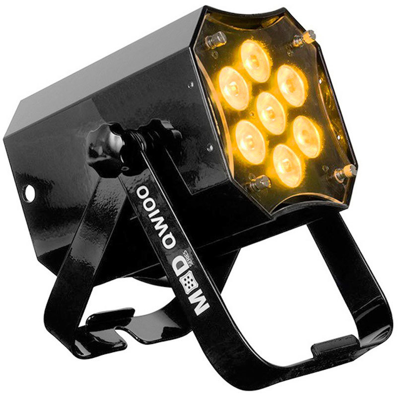 Устройство MOD QW100 поставляется с 7 светодиодами RGBW (4-в-1) мощностью 15 Вт каждый (общей мощностью 105 Вт), вилочным кронштейном и тремя взаимозаменяемыми фильтрами размытия, которые легко заменяются барашковыми винтами. Стандартный угол луча 17° можно на ходу изменить на 20°, 40° или 60°.