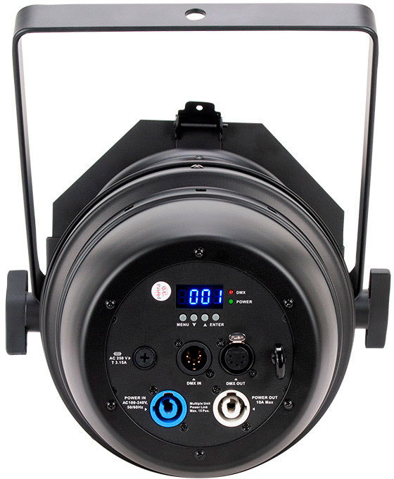 - Угол луча: 7, 11,5, 16, 20,5 или 25 градусов (ручная регулировка), Подключение: DMX: 5-контактный DMX In Out, PowerCON In Out к гирляндной цепи