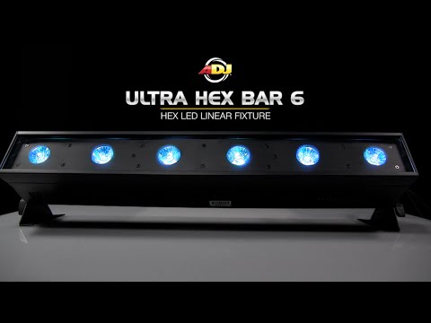 Профессиональные функции Ultra HEX Bar 6 включают 5 режимов DMX (каналы 6, 7, 8, 12 и 18), 6 режимов работы, 5 кривых яркости, работу без мерцаний и 4-кнопочное меню DMX с цифровым дисплеем, а магнитный замыкатель Quick Align разработки ADJ (подана заявка на патент) обеспечивает отсутствие мельканий цветов в выходном потоке. Возможно гирляндное объединение до 12 устройств с помощью встроенных в устройства входных/выходных разъемов питания IEC.