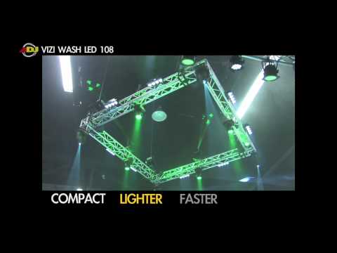 American DJ Vizi Wash LED 108 - светодиодный сканер с полным вращением (голова) заливного света. Основан на 36 3-х ваттных светодиодах, обладает мощным световым потоком. Рекомендован в качестве света для клубов, дискотек, в качестве сценического заливающего света.