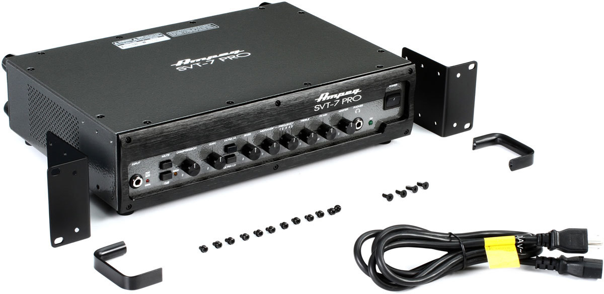 Отличительной особенностью этой модели является то что он выполнен на гибридной схеме - ламповая секция преампа (одна лампа) + транзисторный оконечник. Такая конструкция позволяет достичь довольно мощного уровня на выходе, при этом не сильно размазывая звук и не делая его мыльным и нечитаемым. Сам характер саунда (как и практически всех усилков Ampeg) - классический, тёплый, с преобладанием довольно плотной нижней середины. По количеству входов/выходов SVT-7Pro предлагает очень обширные возможности коммутации и регулировок. Конструкция корпуса позволяет также устанавливать усилок в рэк.