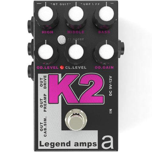 Очень давно знаком с линейкой мини преампов от АМТ, могу сказать, что с каждым новым прибором звук становится всё лучше и лучше! К2 - одна из самых хайгейновых педалей серии, её мощи хватает с лихвой, даже без грелки. Только на максимальном гейне у меня появляется явный фоновый шум, до этого положения крутилки вполне можно обходиться без шумодава. Звук очень сильно зависит от динамики игры, в отличии от R2 имеет смысл именно высекать ноты для жирности звучания. На кранче красный канал звучит также вкусно и читаемо, с явным приятным хрустом. Звук вряд ли подойдёт для современных тяжелых стилей из-за плотности звучания и обилия низких частот, а вот для грува и ню метала то что надо. На втором, зеленом, канале можно вырулить что-то вроде фендеровского стекла или небольшого кранча. Можно подключать как педаль перегруза, тогда вместо второго канала включается просто байпас. Кабсим работает прилично, но я бы стал использовать только в крайнем случае.