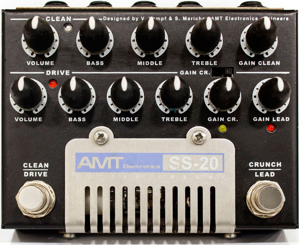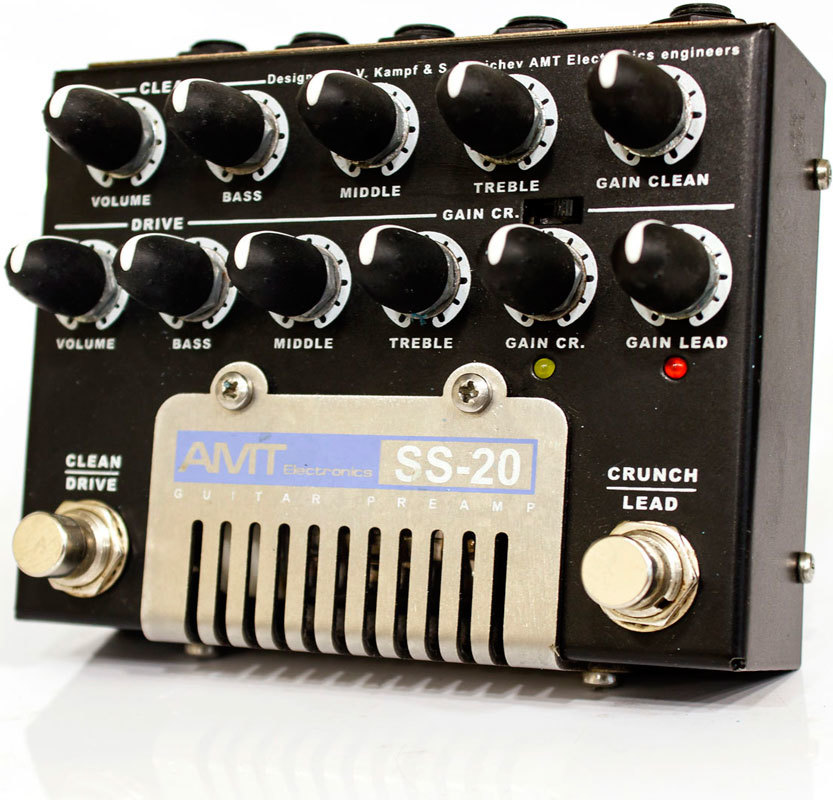 AMT SS-20 Tube Guitar Preamp - двухканальный ламповый гитарный предусилитель AMT SS-20 (названный по аналогии с межконтинентальной баллистической ракетой класса «земля-земля») - самый популярный гитарный прибор в России, быстро ставший легендой среди хэви-металлического мира за свой поразительный ламповый дисторшн.