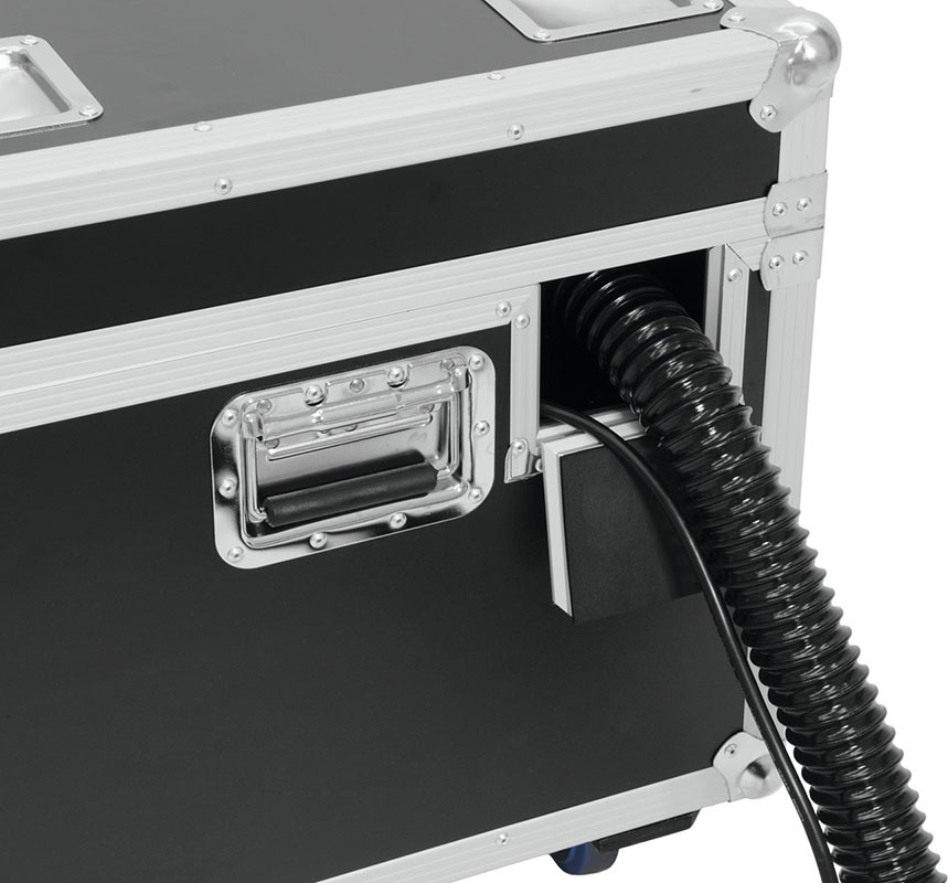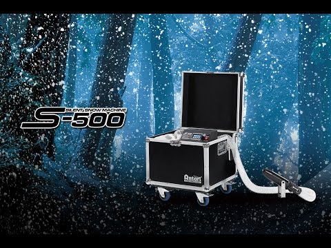 S-500 новый профессиональный генератор снега в кейсе на колесах. С помощью удобного распылителя на 10-м шланге, который легко крепится стойке или ферме, можно производить снежный эффект с регулировкой расстояния и объема выброса. Управление осуществляется через ЖК-панель, по DMX и с радио пульта ДУ.