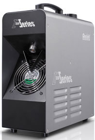 Новая модель с вертикальным расположением отличается простотой и удобством в управлении. Усовершенственная конструкция включает в себя такие новые компоненты, как алюминиевый нагреватель, тихий и экономичный насос, схемотехнику с новыми инженерными решениями и высокоточный сдвоенный вентилятор. Действие нового нагревательного элемента настолько эффективно, что машина может работать в течение 2 часов при 30%-ной нагрузке, потребляя всего 1 литр жидкости. Генератор использует обычную жидкость для дым машин.