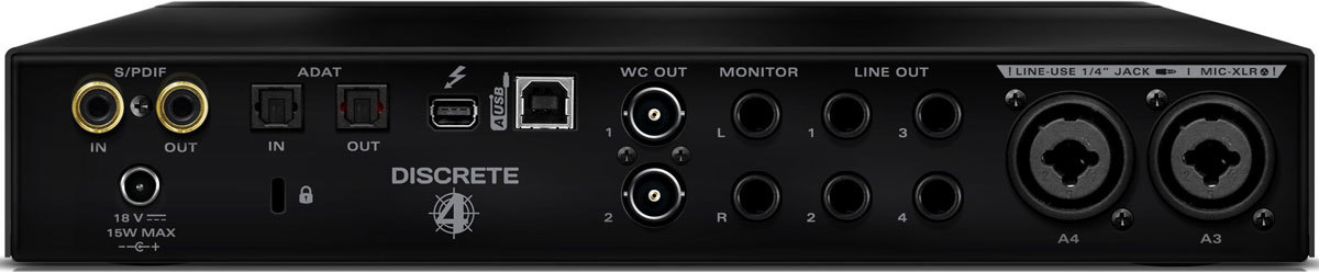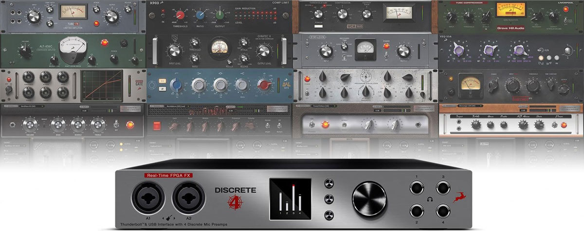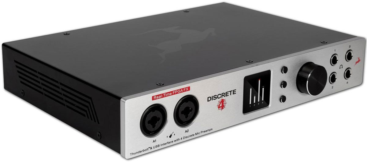 Antelope Audio Discrete 4 – настольный многоканальный звуковой интерфейс USB/Thunderbolt, совместимый с Mac и Windows. 14 входов и 20 выходов, а также четыре микрофонных предусилителя с технологией моделирования Accusonic, низким уровнем шума 128 дБ и широким динамическим диапазоном 121 дБ. Используются качественные АЦ/ЦА-конвертеры и 64-битная технология Acoustically Focused Clocking, что обеспечивает эффективное подавление джиттера.