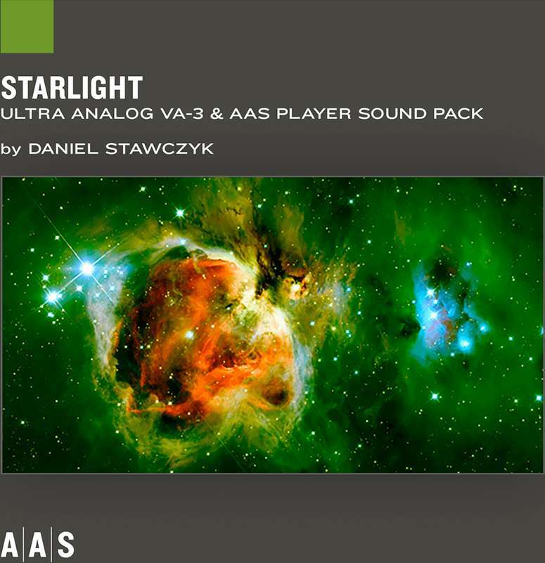 Starlight был создан с использованием аналогового синтезатора Ultra Analog VA-3. Вы, конечно, можете воспроизводить и редактировать эти звуки непосредственно в Ultra Analog VA-3, но также получить к ним доступ и играть их можно через бесплатный AAS Player, который входит в ваш пакет при покупке Starlight.