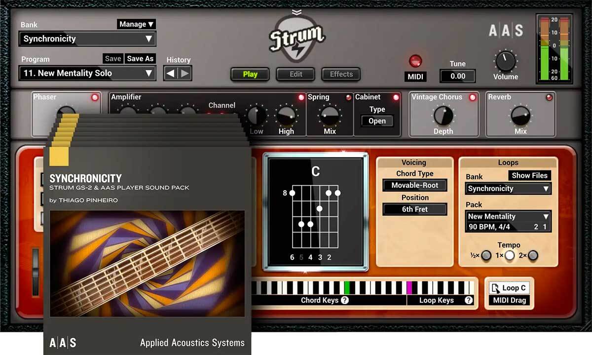 Благодаря огромной коллекции акустических и электрических гитар, автоматическому распознаванию аккордов, сложной аккордовой интонации, интегрированным функциям бренчания и перебора, библиотеке MIDI-риффов, усилителю и эффектам играть на гитаре с помощью клавиатуры стало проще, чем когда-либо.
